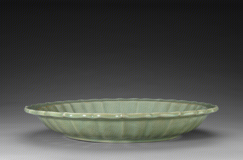 龙泉窑青釉刻枇杷纹盘