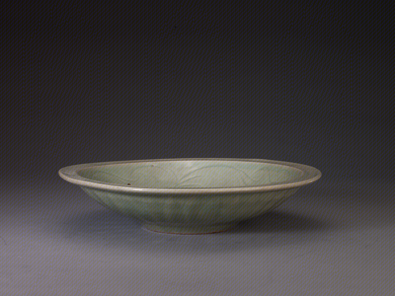 龙泉窑青釉凸雕云龙纹折沿盘