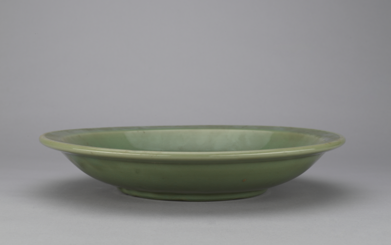 龙泉窑青釉划花折沿盘