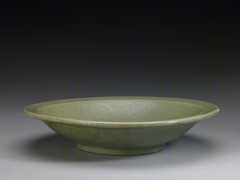 龙泉窑青釉划花缠枝莲纹折沿盘