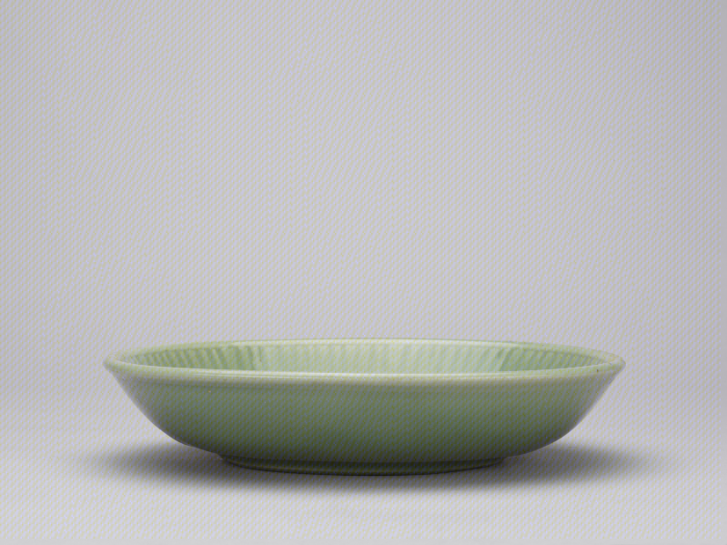 龙泉窑青釉刻划朵花纹菊瓣盘
