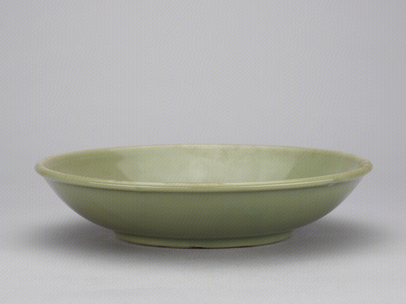 龙泉窑青釉刻划朵花纹盘