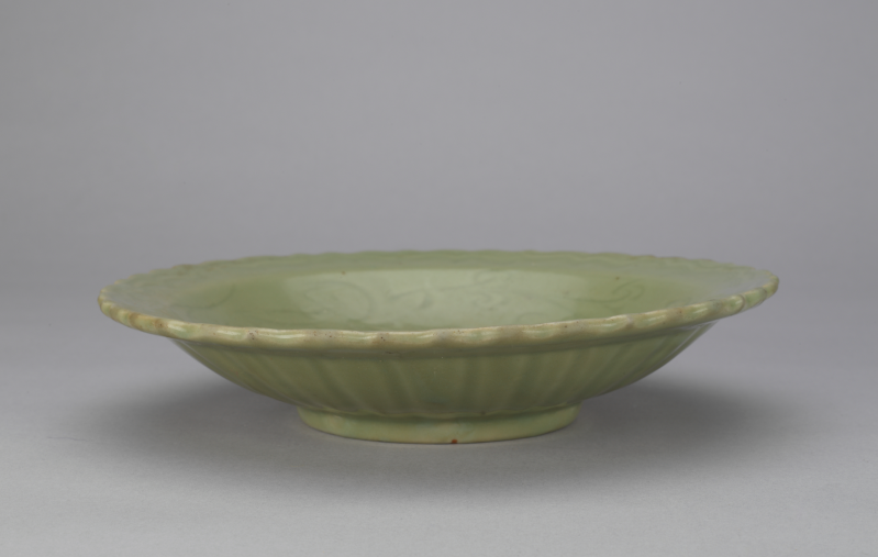 龙泉窑青釉暗划花卉纹花口盘
