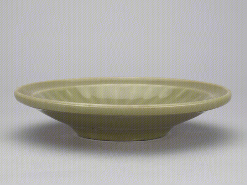 龙泉窑青釉印花牡丹纹菊瓣盘