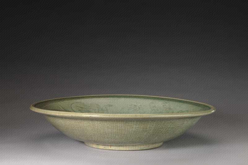 龙泉窑青釉印花龙凤纹盘