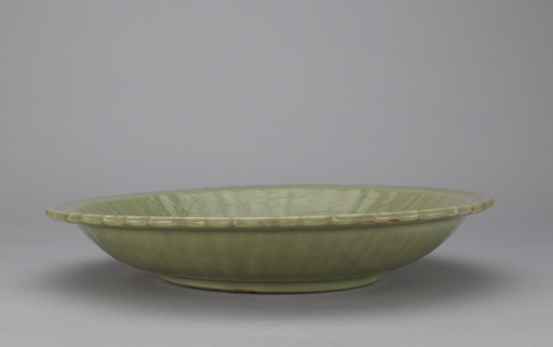 龙泉窑青釉刻花菱花口盘