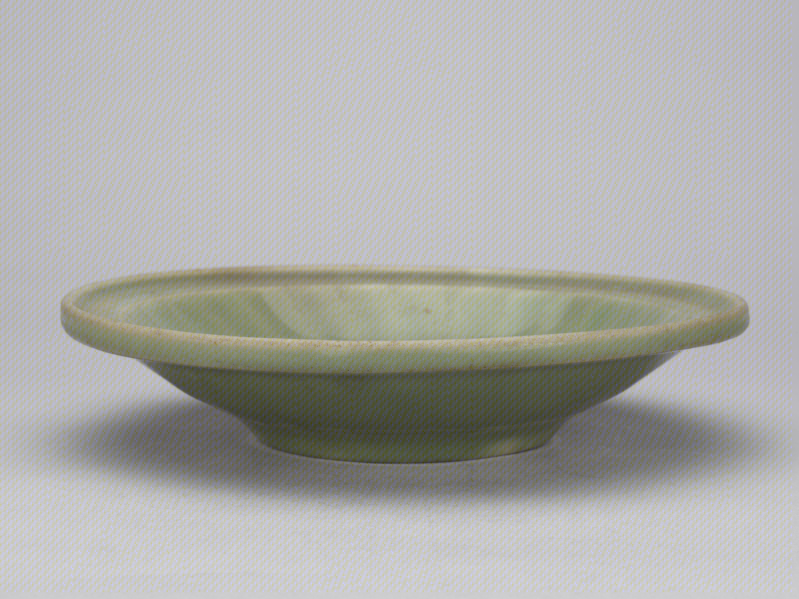 龙泉窑青釉印花菊瓣式折沿盘