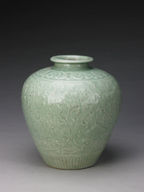 龙泉窑青釉凸花缠枝莲纹尊
