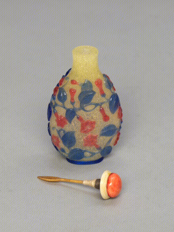 浅蓝色玻璃开光花蝶图提梁壶